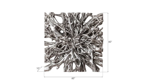 The Cast Naturals Collection highlights our skills at taking an innovative material and making it feel as if it sprang from nature. The Square Root Large Silver Wall Art is made of composite that has been molded to look like a piece of harvested wood it took nature ions to create, then finished in silver leaf. The advantage of having a decorative accessory made from this durable material is that it will long outlast its natural counterparts pulled from the forest floor. This piece of wall art is the perfect representation of the james barclay arts: modern organic. We have Square Root products in a number of configurations and finishes.